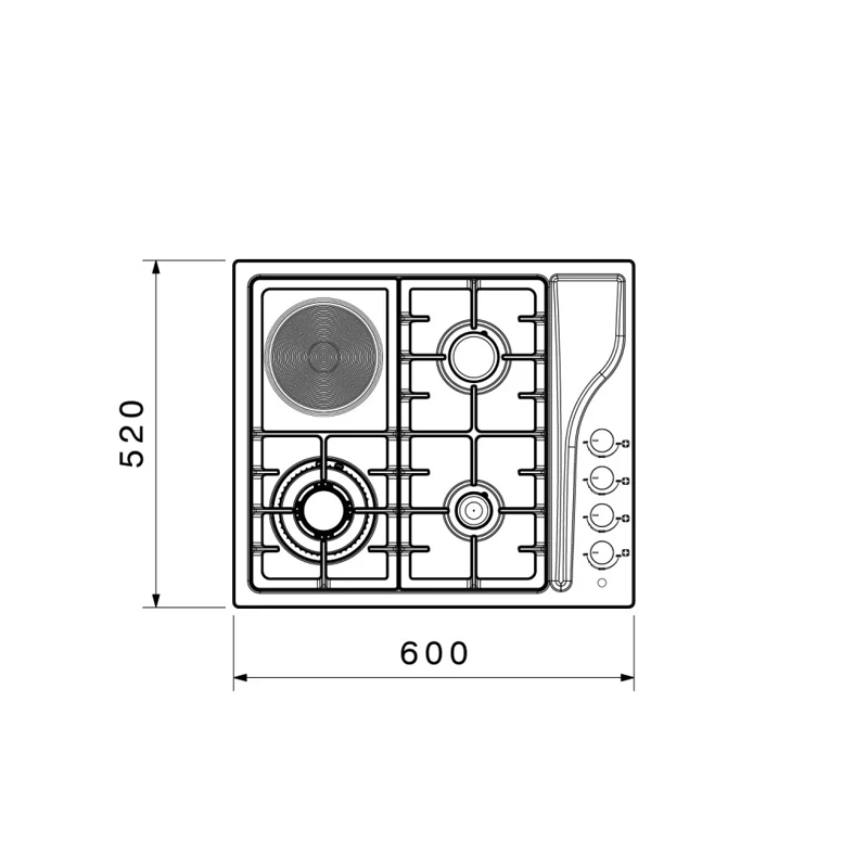 ابعاد برش اجاق گاز (عرض * طول) : 500 * 580 میلیمتر