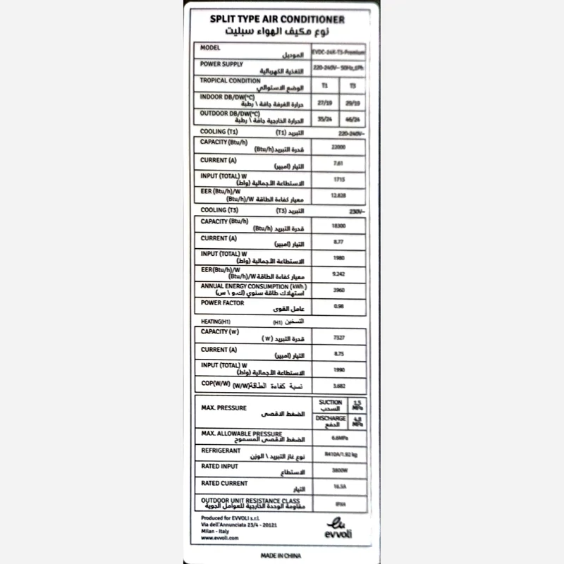 کولرگازی 24000 ایولی موتور بزرگ T3 پنل مشکی جدید گرمسیری