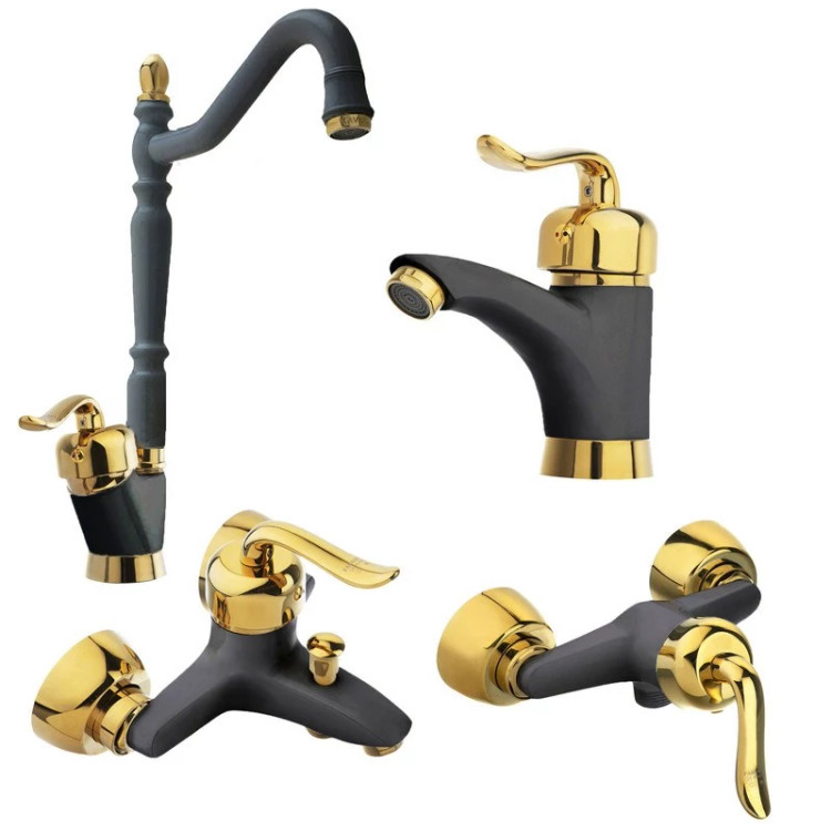 ست چهارتایی شیرآلات مدل قاجاری مشکی طلایی