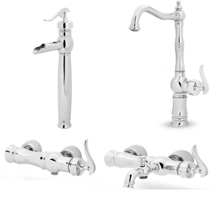 ست 4 تایی شیرآلات مدل بیزانس کروم با شیر روشویی پایه بلند