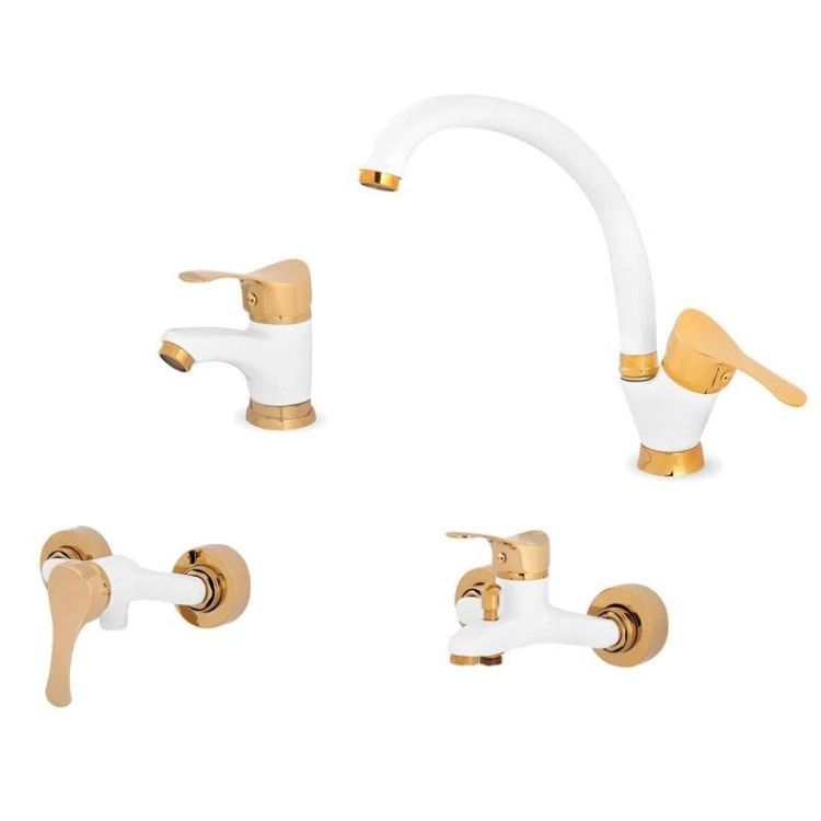 ست 4 تایی شیرآلات مدل دیبا رنگ سفید طلایی