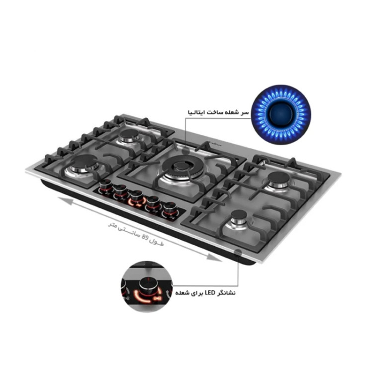 تعداد شعله : دارای 5 شعله با تجهیزات گازسوز ( پلوپز وسط )