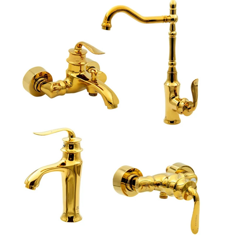 ست 4 تایی شیرآلات مدل هلن رنگ طلایی