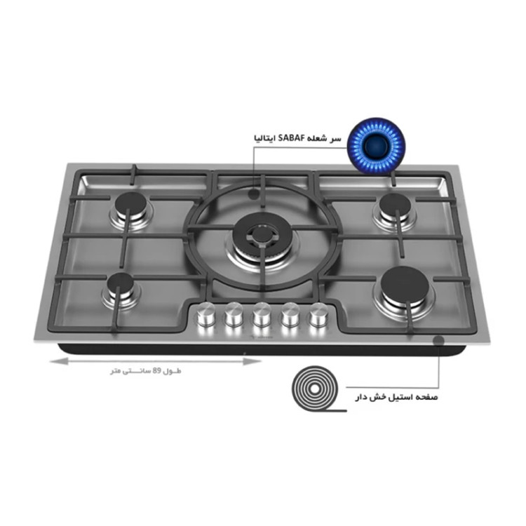 تعداد شعله : دارای 5 شعله با تجهیزات گازسوز ( پلوپز وسط )