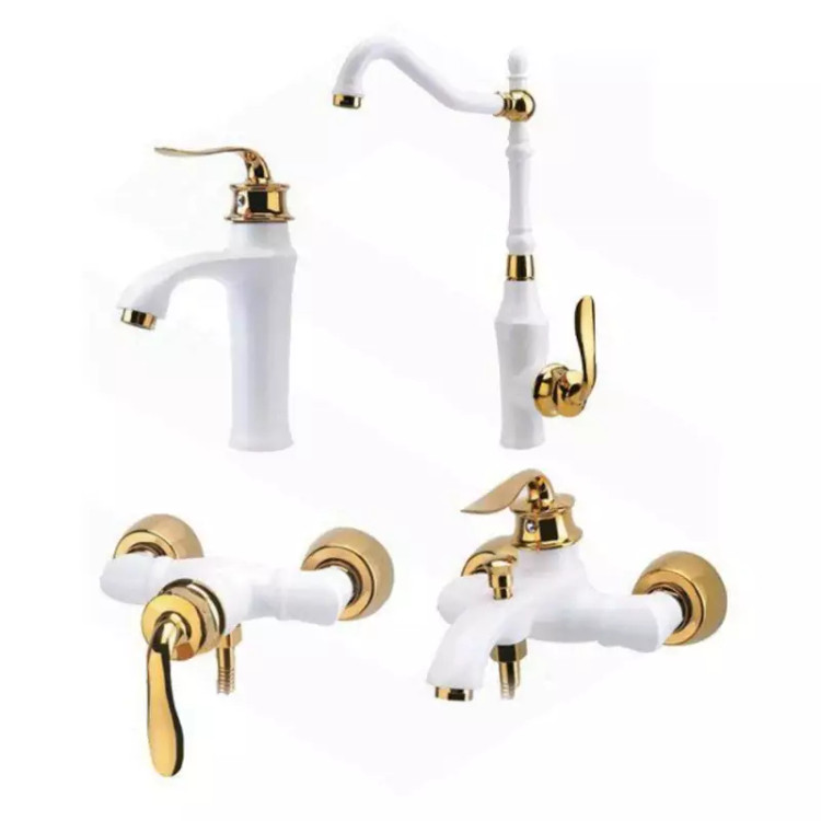 ست کامل 4 تایی شیرآلات هلن سفید طلایی ایران گروه(پس کرایه)