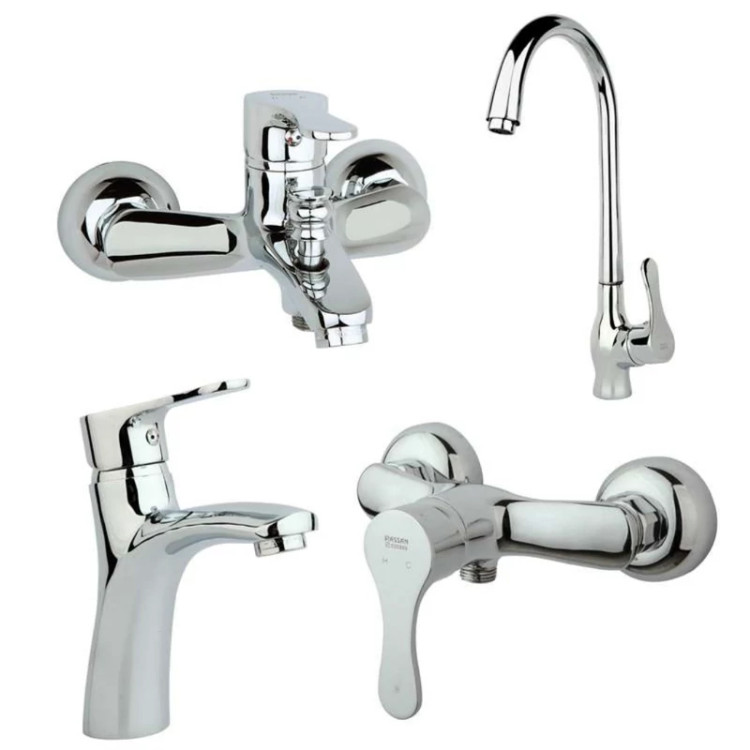 شامل : ۱عدد شیر روشویی - ۱عدد شیر ظرفشویی- ۱عدد شیر دوش - ۱عدد شیر آفتابه
