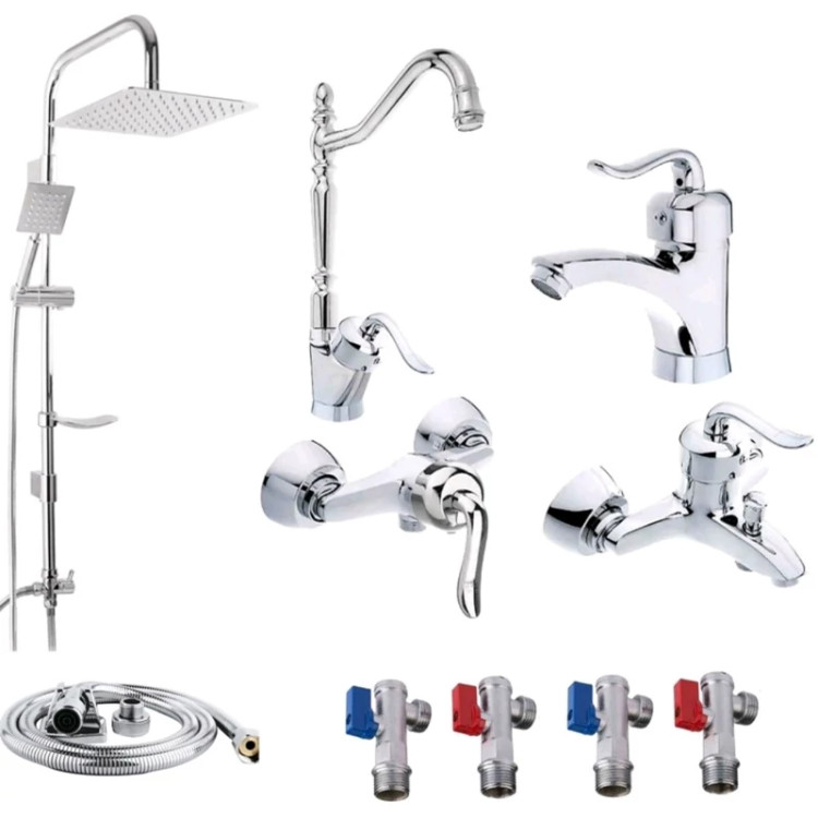 ست 10 تایی شیرآلات قاجاری کروم با علم دوش دوکاره مربع استیل و شیلنگ توالت (پس کرایه)