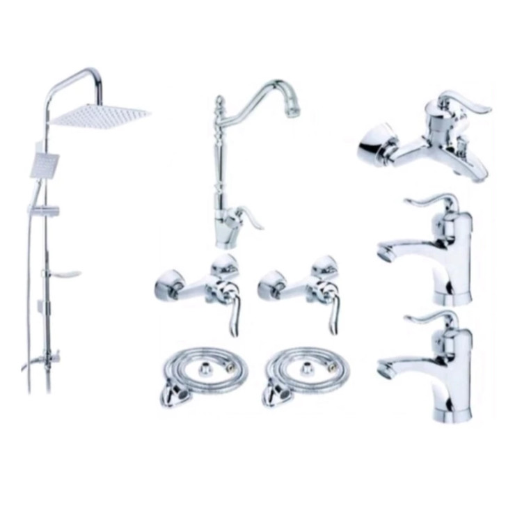ست 9 تایی شیرآلات قاجاری کروم با علم دوش دوکاره مربع استیل(پس کرایه)