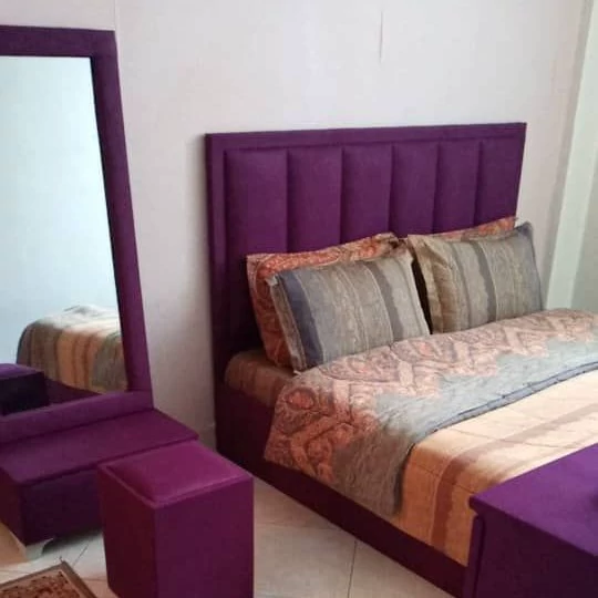 سرویس تخت کامل دونفره شامل تخت و اینه و کشوی زیر اینع ودراور و دو عدد پاتختی و صندلی