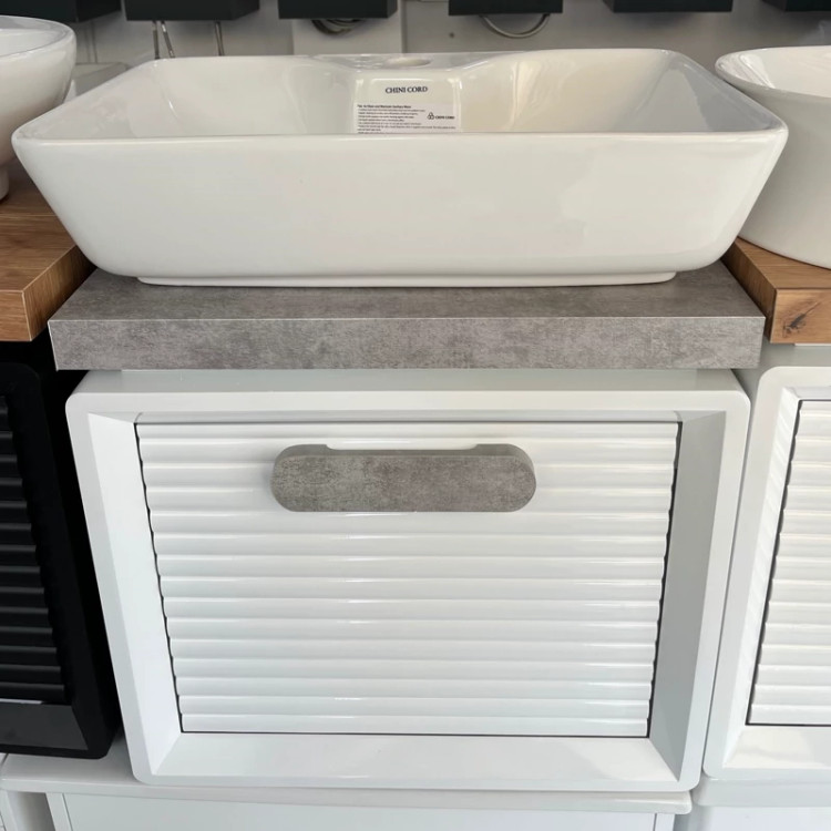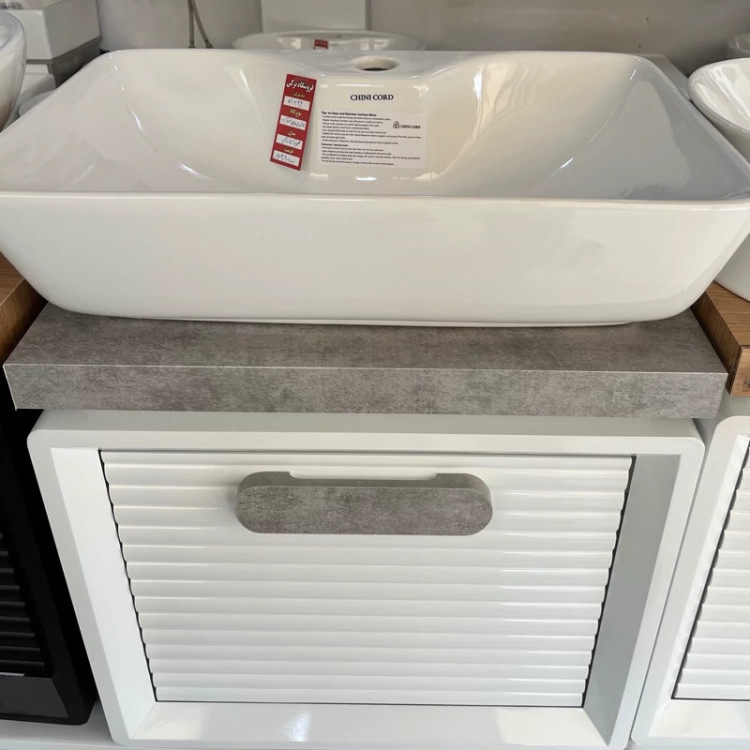 روشویی کابینتی pvc سایز 50 در36 سفید پتینه با سنگ چینی کرد (پس کرایه)