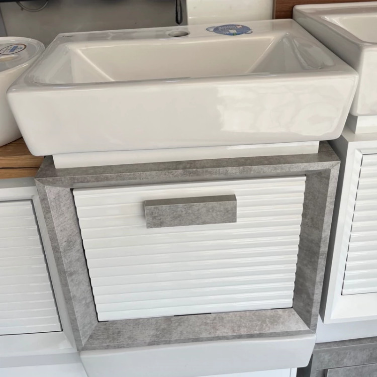 روشویی کابینتی pvc سفید پتینه سایز 47 در 31 با سنگ سینا چینی (پس کرایه)