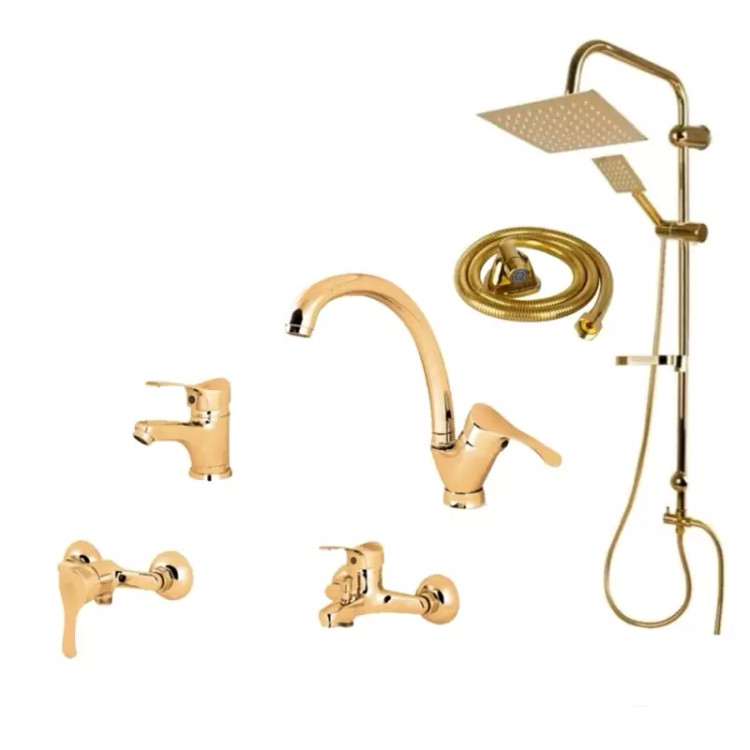 ست 6 تایی شیرآلات دیبا طلایی با علم دوش دوکاره و شیلنگ توالت (پس کرایه)