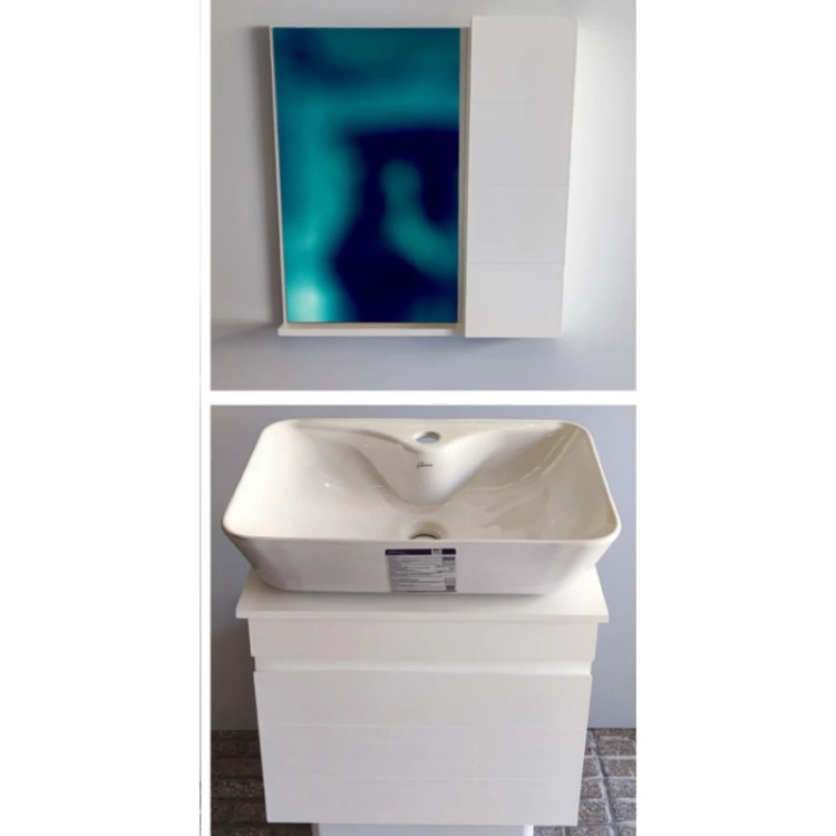 فول ست روشویی کابینتی 50 گاتریا به همراه آینه و باکس سفید (طول 50 عرض 35) (پس کرایه)