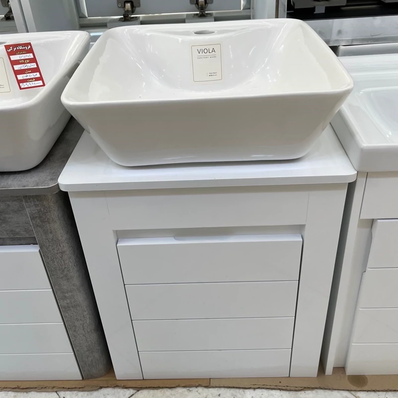روشویی کابینتی pvc سفید سایز 40 با سنگ ویولا (پس کرایه)
